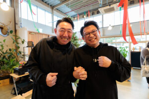 思い出作りでみんなと写真を撮る!が今回のテーマでしたが、小名浜のオーナーさんがこっそりカメラマンさんに「俺と菊田さんと撮ってくだい!」と直談判で撮ったのがこれ😂